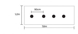 Ukuran batas ialah 120 sm lebar, 20–30 sm tinggi dan 760 sm panjang.